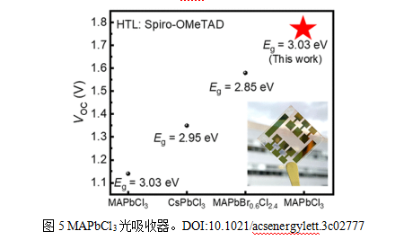 通過(guò)調(diào)控退火氣氛(氮?dú)?、空氣和MACl蒸氣)來(lái)增強(qiáng)MAPbCl3的結(jié)晶。過(guò)量的MACl蒸汽提高了表面覆蓋率,這對(duì)薄膜的穩(wěn)定性至關(guān)重要。證明了鈣鈦礦薄膜的微觀結(jié)構(gòu),包括表面形貌、晶界和界面,可以影響光伏性能。隨后獲得的1.78 V的開(kāi)路電壓是單結(jié)鈣鈦礦太陽(yáng)能電池的最高記錄。